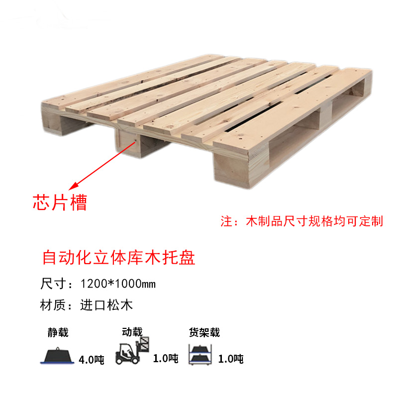 優(yōu)選材料:選用進(jìn)口松木制作,密度560-600kg/立方米,干燥性好,不易變形和開裂,耐腐蝕牢固耐用:采用三種不同強(qiáng)度的螺絲釘加固,隱形美觀,牢固性好芯片卡槽:托盤設(shè)有RFID芯片槽位置,可插電子芯片,高效管理貨物,是智能倉(cāng)儲(chǔ)、物流電商、立體貨架等行業(yè)的得力助手四邊圓角:四角倒圓角設(shè)計(jì),預(yù)防碰撞時(shí)給貨物帶來(lái)?yè)p害,